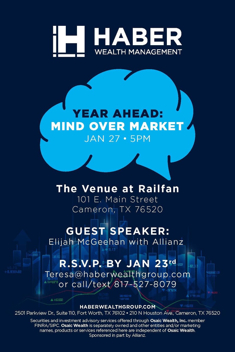 Haber Wealth is excited to invite you to our annual event, Year Ahead: Mind Over Market, hosted at The venue on Railfan.
