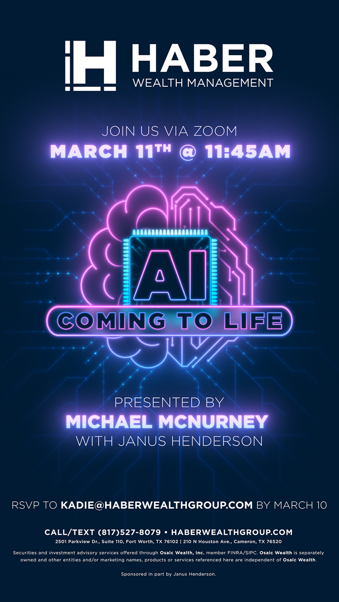 Join Haber Wealth Management for an exclusive Zoom webinar featuring Michael McNurney from Janus Henderson, where we will explore the transformative power of artificial intelligence and how it is reshaping industries, including finance.