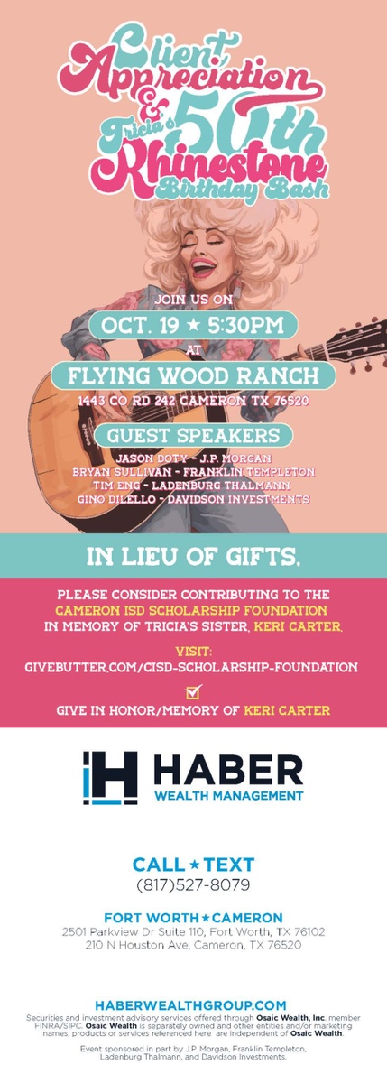 In Lieu of gifts, we encourage contributions to the Cameron ISD Scholarship Foundation in memory of Tricia's sister, Keri Carter. Donations can be made at givebutter.com/cisd-scholarship-foundation.